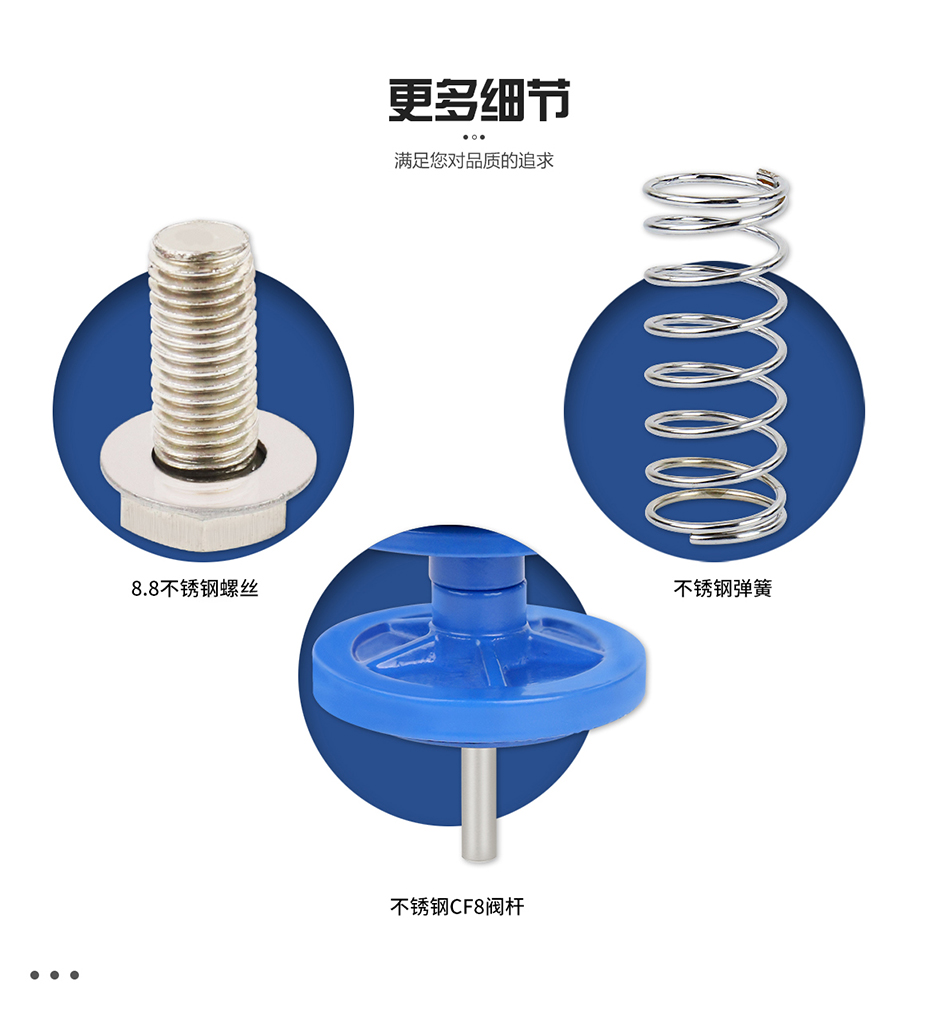 配件采用不銹鋼304材質(zhì)防止生銹,使用壽命長。